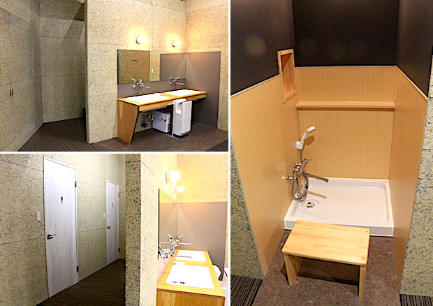 (左)一階の奥に手洗い場。そして裏にはトイレが。(右)二階には足洗い場もある。