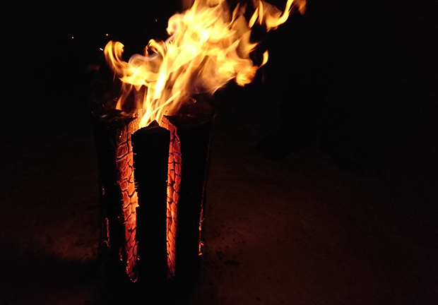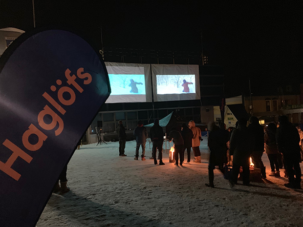 この日の夜は、栂池スキースクール横の特設会場で、アンティ・アウティのスノームービー「CLOSER」の上映会。会場は室内かと思いきや、なんと雪上。スウェーデントーチや焚き火に当たりながら暖をとり、温かい燗酒を飲みながら、建物の壁に張られたスクリーンに映し出されるムービーを鑑賞する。北欧や北海道の雪山を舞台に、アンティそして吉田啓介の美しいライディングが流れると、会場からは自然と「イエー!」の声が発せられた。上映終了後は、隣接のクラブに会場を移してアフターパーティ。ホグロフスの人たちやライダー、参加者の人らと交流して夜は更けていく。