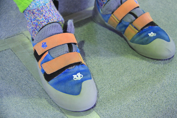まったく動けなかったのだから、クライミング初体験と言っていいだろう。まずはシューズとハーネスを借りる。普段履くシューズは、指一本分が余るくらいが最適のサイズと言われているけれど、クライミングシューズはつま先に隙間のないピッタリとしたものがいいという。履いてみると詰まっているような感覚だ。このほうがつま先に力が入り、小さなホールドにも立てるらしい。ハーネスも落ちる自分を守ってくれる重要なアイテムだ。