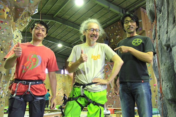 登るためのコツを教わらずに壁へ。スタートから次へ進めず落下。今回の先生はアキママメンバーのKさんとクライミングウェア・ブランドINGAのSさん。ふたりが登って見せてくれた。簡単にスイスイ上がっていく。ルートは違うのだけど、ふたりと同じように登るイメージを持って2回目へ。次のホールドに手を伸ばす。そしてその次のホールドに届かせるために足場を探す。そして一歩一歩上へ。何分経っただろうか。腕がワナワナしてきた。やっとの思いでゴールへ。3メートルくらいの高さだろうか、振り返るとかなり高い。満足感も高い。