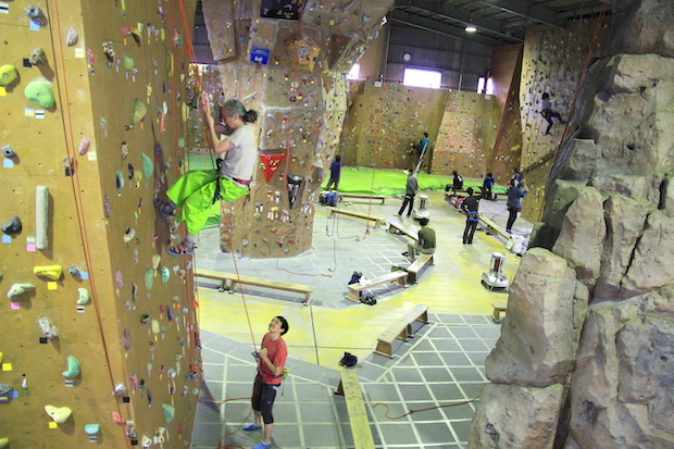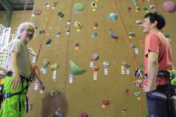 INGAのSさん(右)はジムでクライミングをするのは数年ぶりと話していたが、トライしていくうちに感覚が戻ってきたとか。
