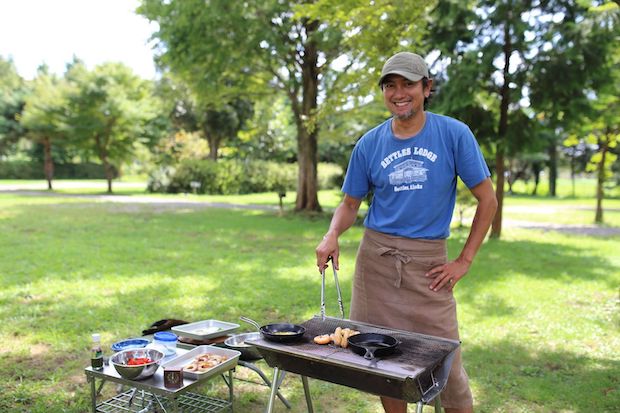 Akimamaでもおなじみ、さまざまなアウトドア雑誌やWebサイト、野外イベント、CM制作現場などで活躍中のアウトドアコーディネーター小雀陣二さんだ。ゲスト3名とは旧知の仲で、アウトドア仲間でもあることからこのスペシャルな人選が実現した。ご本人は山/アウトドア雑誌でオリジナルレシピを数多く発表している得意の料理の腕前を生かし、8日(日)に山の料理体験教室を担当する。
