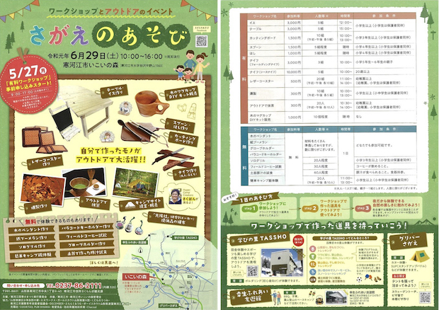 大人も子どももDIY。アウトドアの道具を自分で作って遊ぶ「さがえのあそび」は6月29日開催。