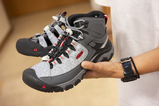 南北約4kmにもわたる会場に点在するステージを、くまなく回るには、しっかりとしたシューズが必要だ。ときには雨も降る会場では、防水加工されたトレッキングブーツがベストだが、最近では街でも履けるカジュアルなレインシューズが女性に人気だ。また、キャンプサイトなどでは、アフターシューズとして、サンダルを持って行くとリラックスできる。