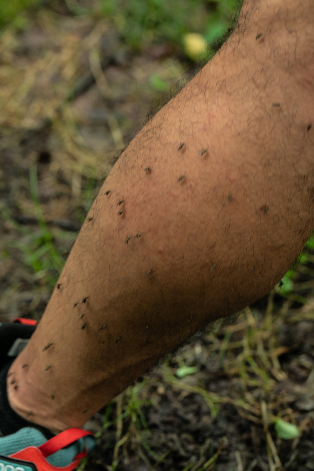 翌日足の腫れが多少引いたので刺された方を数えてみると90箇所以上やられていた……。レッグカバー着用側は20箇所ほどだったので、その差は明らかだった。この結果だが、ウェア、パンツなら多分刺されてはいなかっただろう。今回は肌に密着する薄手のカバーだったのでこのような結果になったかと思われる。
