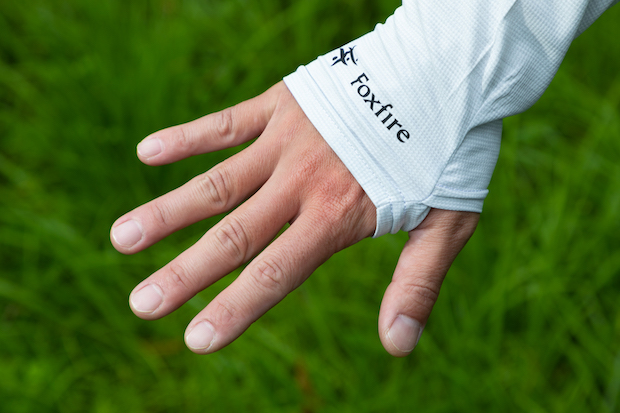 夏場でもあちこちのフィールドにいく筆者にとって着替えることなくパッと着脱できるカバータイプは重宝する。アームカバーの袖口はサムホールになっているので、手の甲までカバー、上着を着る際も捲り上がることもなく、上腕側には程よい締め付けでズレ落ちることもない。レッグカバーも同様に足首までしっかりとカバーし、ズレ落ちない。いずれもストレッチがかなりあり、動きを妨げることはなさそうだ。フォックスファイヤーで展開しているスコーロンアイテムは防虫性能だけでなく、UVカット、そして吸汗速乾性も兼ね備えている。とくに「SCブリスクタッチアームカバー」は肌面撥水機能がプラスされているので、汗をすばやく表側に拡散し、撥水糸が汗戻りを抑えてくれるので常にサラサラしていて気持ちがいい。