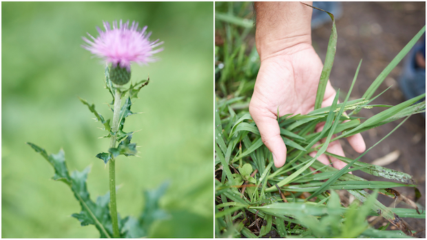 里山は公園でもよく見られるギザギザしたあざみの葉や鋭い葉の雑草、皮膚が薄く弱い乳幼児にとって草のこすれやかぶれの原因になることが多いそう。