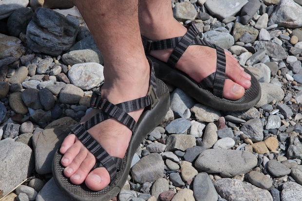2.足元は泳げて走れるサンダルを