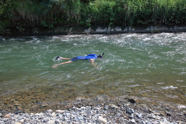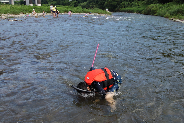 4.子供と川を確認し、保護者がまず泳ぐ