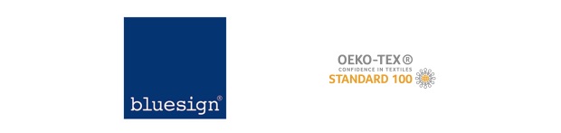 ブルーサイン(左)とエコテックス(右)の認証ラベル。