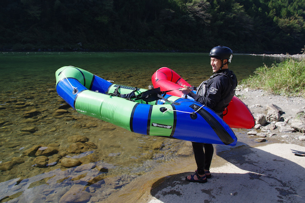 藤井:私がツアーしている吉野川は水深があり、瀬でもあまり船底をすらないからトラブルがないのかもしれません。浅いところではパックラフトからさっと降りてポーテージ(ボートを担いで歩くこと)すればオッケー。リジットのカヤックでのポーテージは重労働ですが、パックラフトは軽いのでとても楽です。