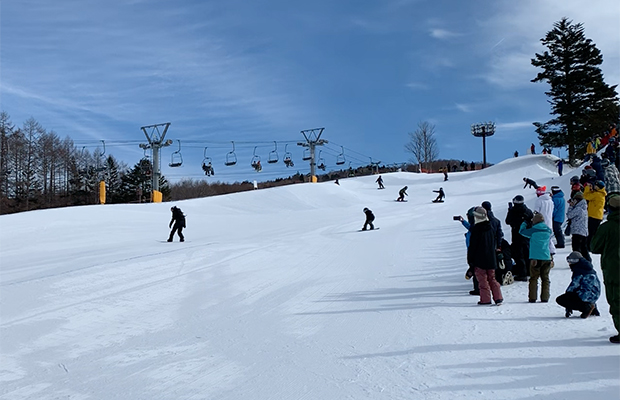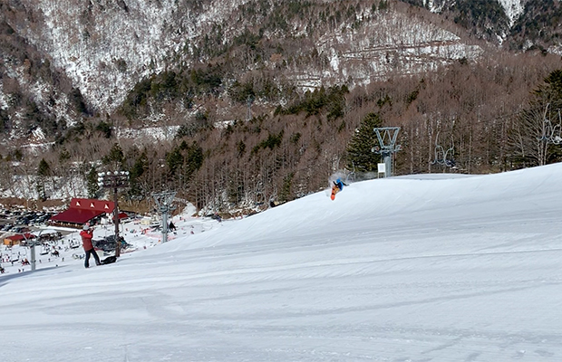 朝一からゲレンデに向かうと、この日を心待ちにしていた友人たちも集まって、プチ同窓会のよう。雪不足気味の今シーズンだが、丸沼高原スキー場は、標高がベースでも約1,400m、トップで2,000m近いため、全面滑走可能。開会式までの時間、友人たちと朝一のグルーミングバーンを堪能した。