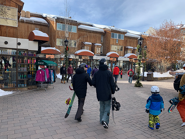 滑りも食事も満喫して、ヴィレッジ内をシャトルバス乗り場まで歩いていく。とにかくこのヴィレッジの雰囲気がめちゃめちゃ素敵なのだ。ホテルもショップもちょっとした広場も全部可愛い。アメリカというよりヨーロッパ風の外観で、どこを切りとってもインスタ映えする。