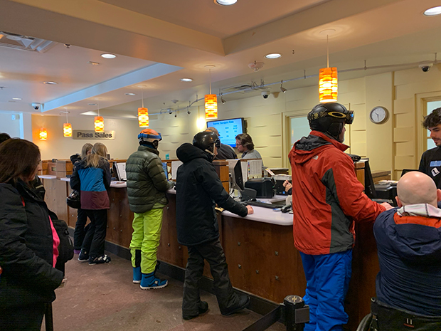まずチケットを購入。1DAYチケットの定価は$219(約23,500円)らしい。オンライン割引やグループ割引もあるようだが、それにしても日本のスキー場の一日券の金額の3倍以上もする。実際は、地元の人たちの多くが、$800ぐらいのシーズンパスを購入するらしく、すぐに元が取れるのだとか。それはそれでうらやましい。ちなみにリフト券はICチップが埋め込まれたカードタイプ。