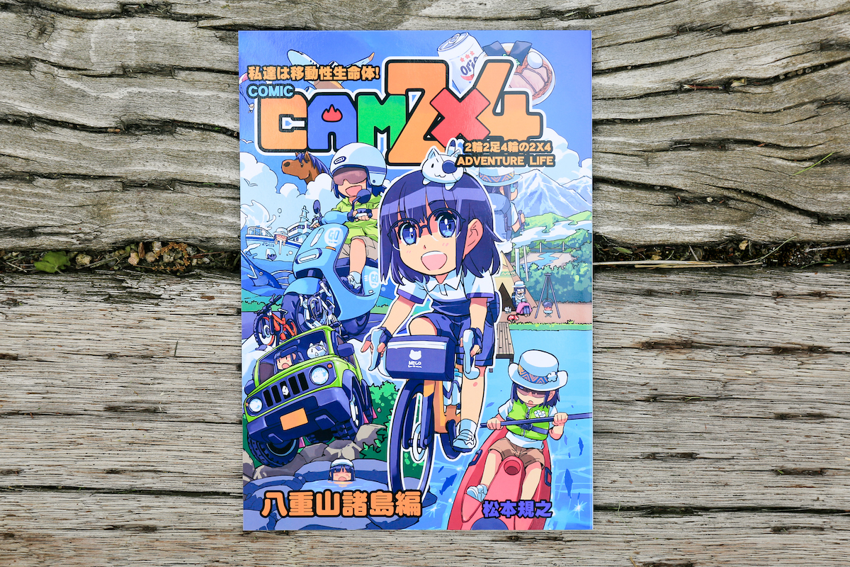 そんな松本先生が久しぶりに出された同人誌シリーズが「CAM2×4」。副題に「2輪2足4輪 ADVENTURE LIFE」とあるように、自転車を含めたいろんな乗り物に乗りながら旅をするマンガとなっています。