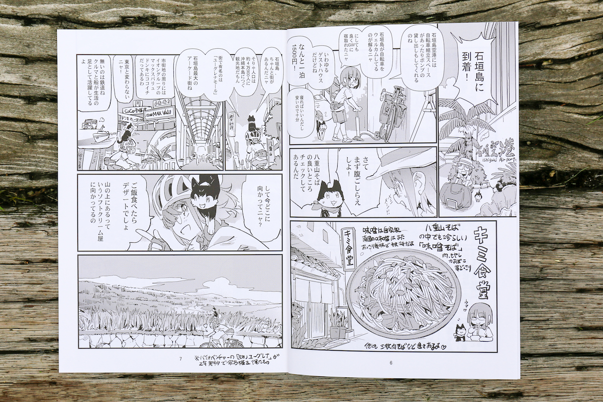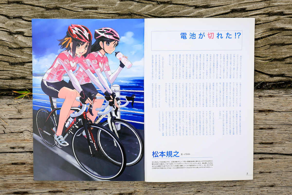 かたちとしては二次元オタク業界界隈の自転車好きのサイクリングレポート、大会参戦記を掲載した合同誌で、イラストと写真、そして文章で読みやすくまとめられています。自転車のパーツのこと、ルートのこと、なぜそんな長いルートを走ろうと思ったかなど、かなりパーソナルな内容が盛り込まれて、なんだか親近感が湧いてきます。