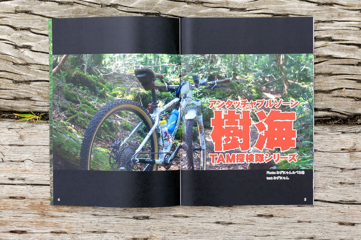 同人誌っぽくないクールな表紙のTAMは、ちょっと変わった自転車遊びや、キャンプ、登山などのアウトドアアクティビティをして、その様子をレポートする同人誌。vol.5の巻頭では富士の樹海をMTBとシクロクロスで探検。素人のぼくは不安になりながらも、興味深く読ませていただきました。