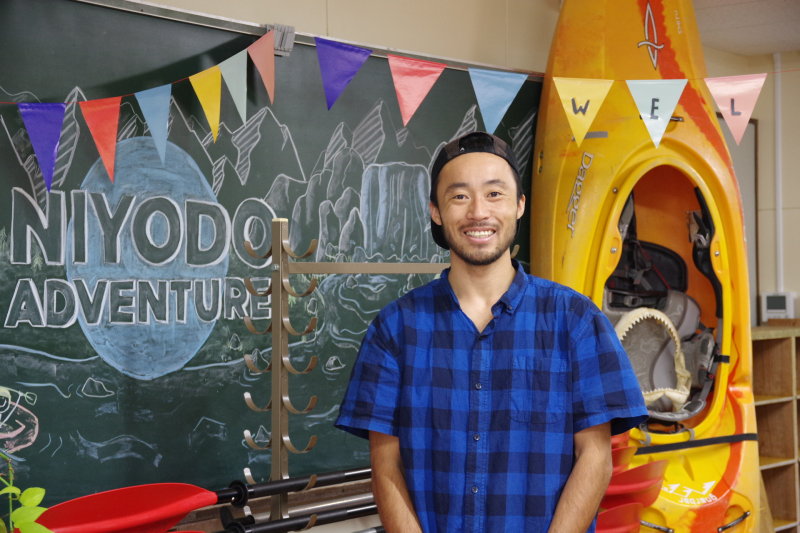 神澤識大さん。仁淀アドベンチャーの事務所(仁淀川町シェアオフィス内)にて。