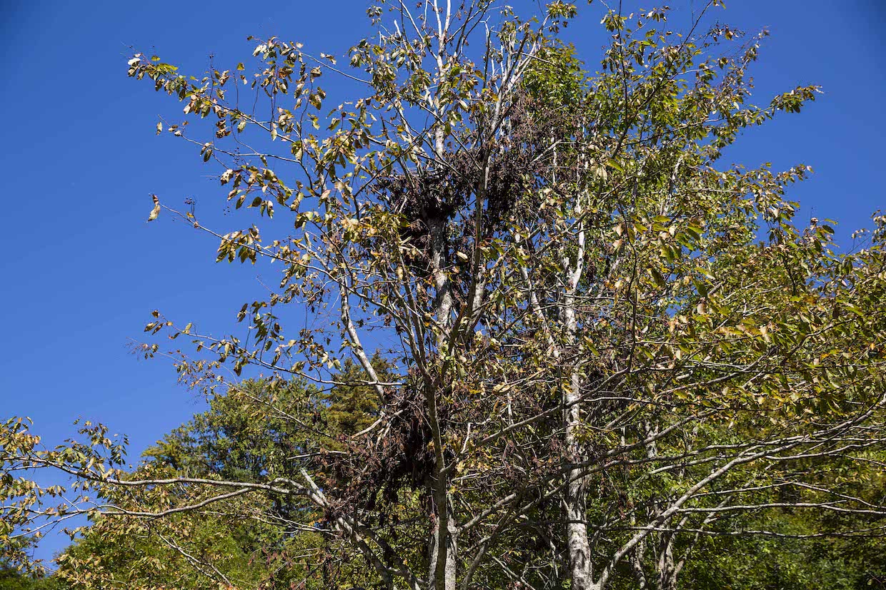 「あれはウワミズザクラで、クマはさくらんぼを食べに登ります。あっちはミズナラでドングリですね」