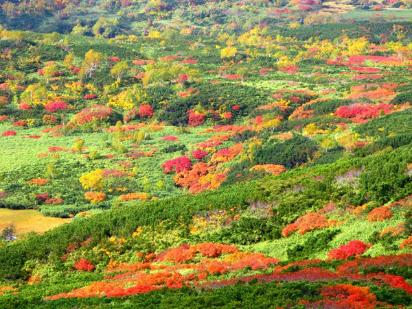 「いや、そうじゃないんですよ。本州の紅葉って山全体が真っ赤になる印象ですけど。北海道ってそうはならないんですよ。紅葉するもの、しないもの。紅葉の時期が違うもの。いろんな植物が混ざり合ってるから、色のモザイクみたいになるんですよね」
