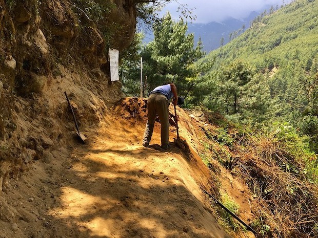 パグディン付近で、ひとり黙々と道の補修を続ける地元のおじさん。誰に頼まれたわけでもなく、ただひとりスコップを動かし続けていた。本当に必要なドネーションは、彼にこそ届けられるべきなのだが