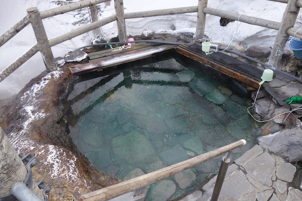 最新情報をお届けしよう! というわけで、2,016年4月11日に現地取材。周囲はまだまだ雪景色。っていうかこの日はグッと冷え込んで、朝6時の気温は-3.2度。手桶は凍ってました。北海道はまだまだ冬ですね