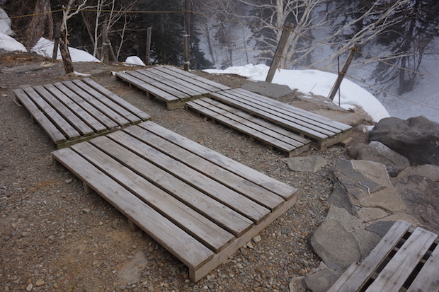 ちなみにここでは、お湯はそのまま自然に帰って行きます。というわけで、シャンプー、石けんのたぐいは使用禁止。しっかり身体を洗ってサッパリしたいという方は、徒歩10分の「吹上保養センター 白銀荘」で日帰り入浴(600円)をご利用になることをオススメします。こちらは広い内湯にサウナ、水風呂、打たせ湯、大露天風呂まで完備しているという極楽ぶりです。ちなみに。この「吹上保養センター 白銀荘」にはキャンプ場も併設。というわけで、夏山シーズンになれば富良野岳や十勝岳への登山を楽しんで、そのついでにゆっくり露天風呂にもつかれるというわけです。