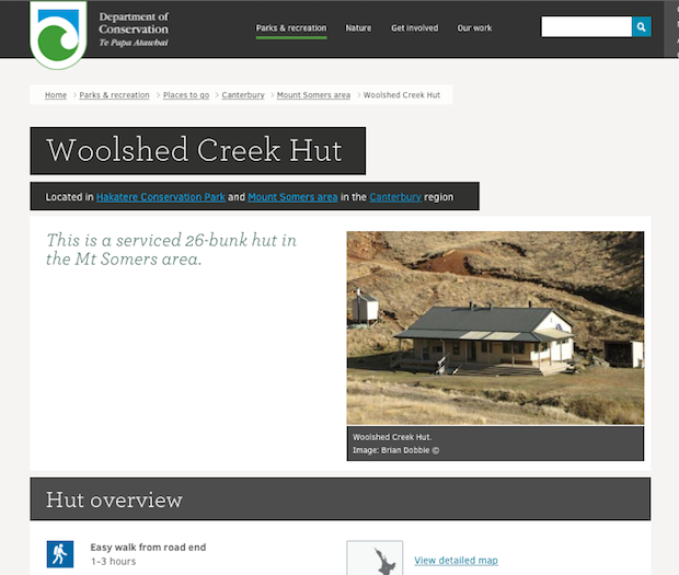 そこでまずリサーチに用いたのが、現地のDOC(=Department of Conversation=自然保護局)のサイト。NZ国内に何百とある山のハットは国営で、DOCが管理しています。また数段階にランク分けされていて、料金も無料~$15まで。