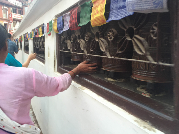 ネパールの寺院にあるマニ車。これを手で回すことでお経を唱えたことと同じ功徳があるとされる。