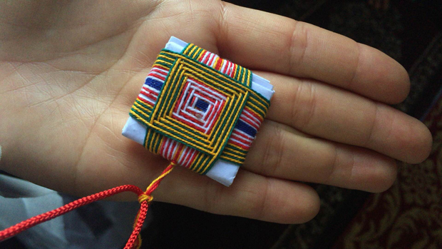 安全祈願でもらったお守り。ネパールらしいカラフルでかわいらしいお守りだ。