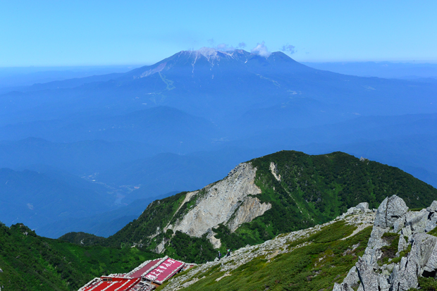 木曽駒ヶ岳からのぞむ、御嶽山。