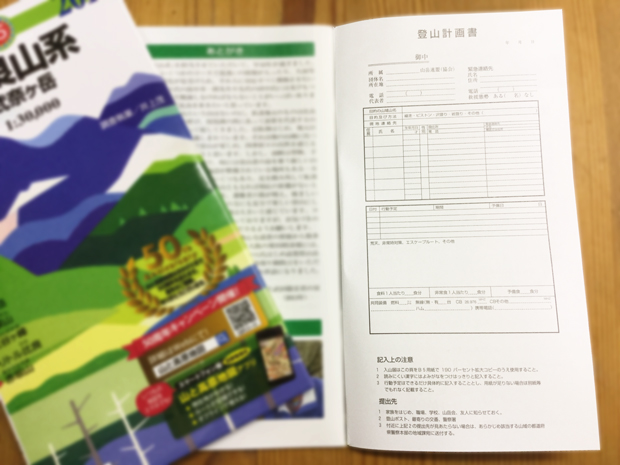 登山者におなじみの、昭文社山と高原地図のハンドブック巻末には、登山計画書のフォーマットがついている。
