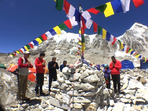 ※写真は2016年の4月25日11時56分のエベレストのベースキャンプ。地震の発生した時間にすべての隊が黙祷を捧げた