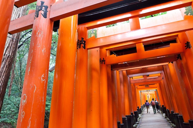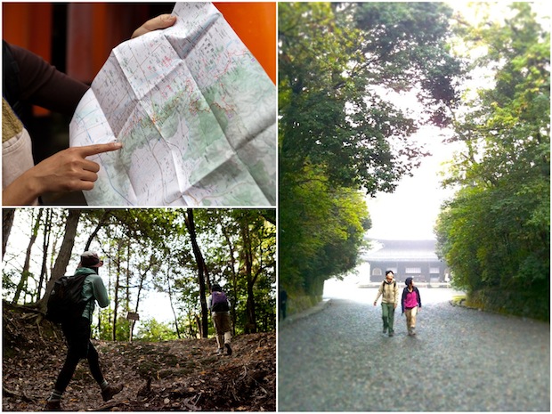 「東山コース」のスタートは、全国の稲荷神社の総本宮である「伏見稲荷大社」。霊地である稲荷山へむかう参拝客に交じって、無数に並ぶ千本鳥居をくぐり、次第に木々が生い茂る森へと入っていく