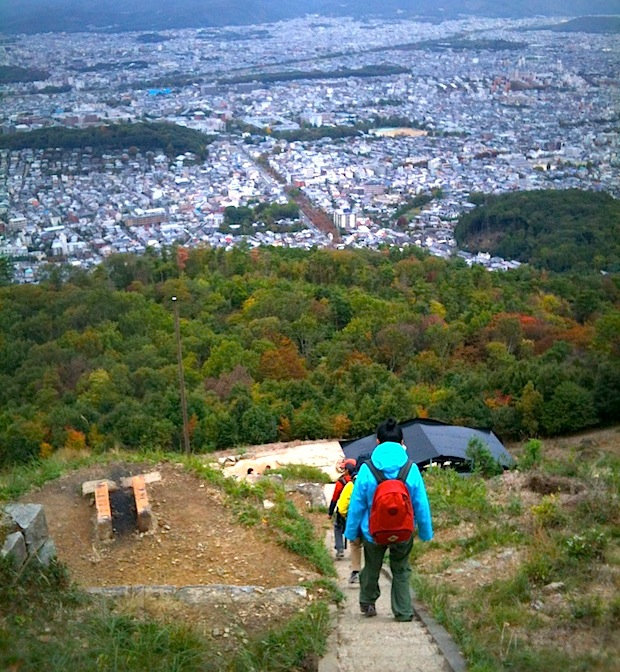 京都では毎年8月16日にお精霊さんと呼ばれる死者の霊をあの世へ送り出すとされる伝統行事「五山の送り火」が行われる。左京区の「大文字」は送り火の代名詞的存在で、その火床がある山が「大文字山」。東山コース上にあるわずか470m足らずのこの山は、散歩感覚で登れることから京都市民の憩いの場でもある