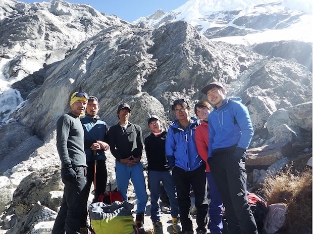 ヒマラヤの未踏峰ロールワリンカンの初登頂に成功したヒマラヤキャンプのメンバーたち。左端が隊長の花谷泰広さん。写真提供:花谷泰広・ヒマラヤキャンプ事務局