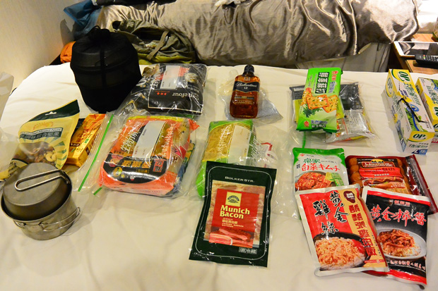 台北の松山空港に降り立った私たちは、地下鉄(MRT)でホテルのある西門まで行き、さっそく、スーパーで明日からの食事や行動食の買い出しをしました。台北にはカルフールやWELLCOME、JASONといったスーパーマーケット(超市)があり、ラーメンやレトルトなど、山で使えそうなインスタント食品がいろいろと売っています。特にオススメなのが種類豊富なインスタントラーメンで、パッケージから味を想像してあれやこれやとメニューを立てるのも楽しみのひとつです。また、SOGOなどのデパ地下には日本製の食品もあるので安心です。