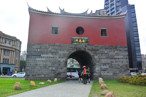 台北市内、駅近くにある清朝時代の台北府城の北門をくぐり、いよいよ出発