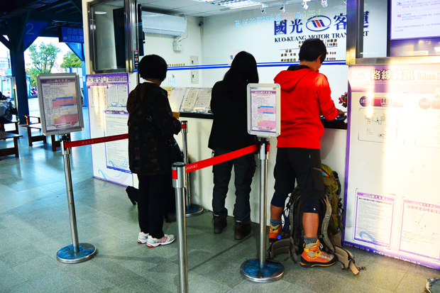 朝6時に起床、7時過ぎには宜蘭のバスターミナルへ。バスの乗車券を購入するため、少し早めに向かいました。武陵農場行きのバスは、國光客運というバス会社が運行しています。カウンターのお姉さんに、共通言語がないので筆談を交えて武陵農場まで行きたいことを伝えます。漢字って便利! お姉さんもスマホを駆使して、なんとかわたしたちをコミュニケーションをとろうとしてくれました。