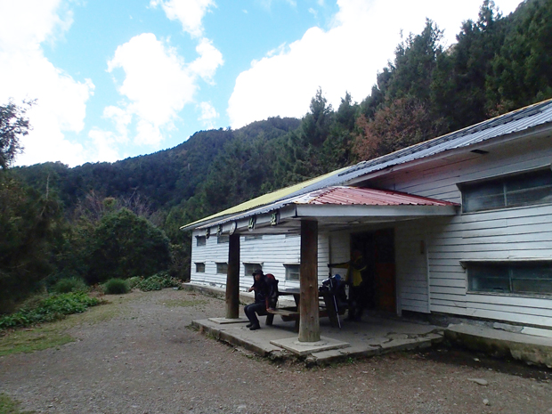 到着後は荷を解き、のんびり外で一杯。ちょうど日曜日ということもあり、下山していくパーティをたくさん見かけました。12月といえば日本はすっかり冬ですが、台湾は秋で山登りにはベストシーズン。今回の入山申請が瞬殺で埋まったのもうなずけます。見かけた登山者の装備は、思いのほか軽装な人もいました。
