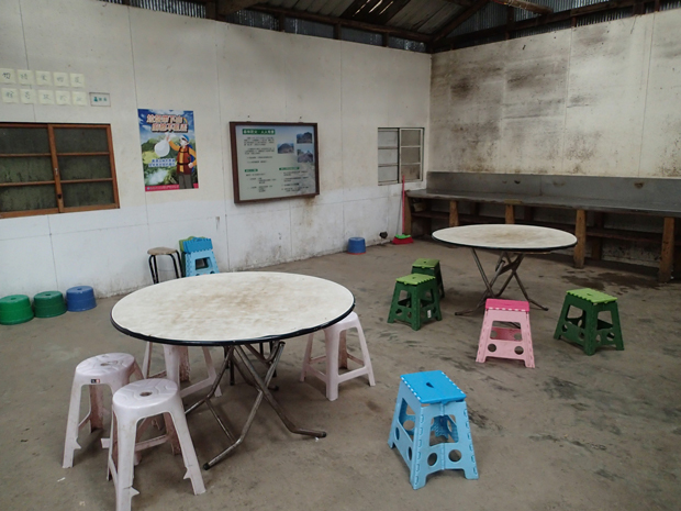 食堂のような炊事場。壁側の棚のようなところで火を使います