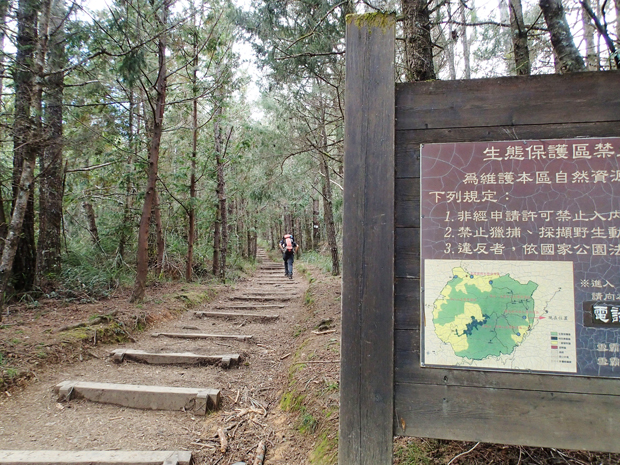 「雪山登山口服務站」(登山指導センター)では入山許可証のチェックがされ、安全登山のためのビデオ(10分弱)を見ました。「雪山登山口服務站」は常駐している係員が家族で住み込みで切り盛りしているようで、小さな子どもを抱えてまるで地方の交番みたいなアットホームさ。トイレを済ませ、ようやく山に入ります。