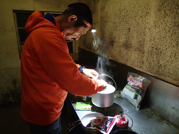 18時には夕食。消灯は20時とのことでしたが、通路などの電気は点いたままでした。翌日にそなえ、消灯とともに就寝です。翌3日目は三六九山荘を経て、雪山山頂をねらう10時間以上の長丁場。翌日からがある意味、本番とも言えます。