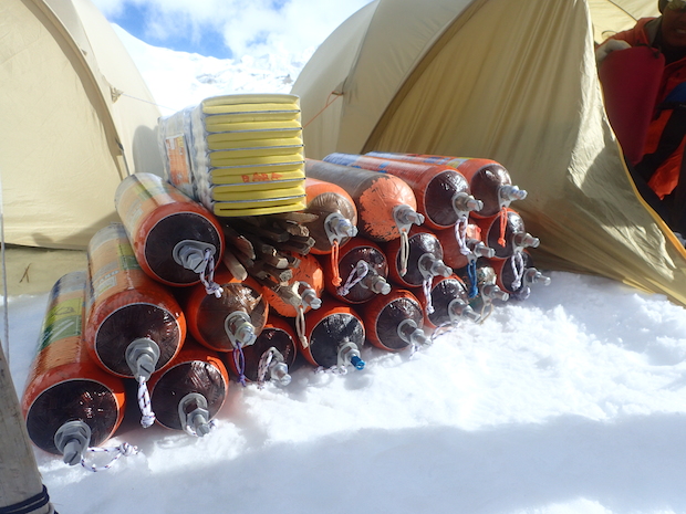 ベースキャンプには、長期間滞在し、ここで体調を整えたり、アタックの最中に凍傷にならないよう酸素マスク、帽子など顔に隙間なくつける練習などもおこなう。