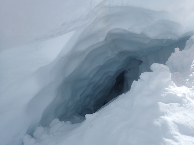夜が明けはじめ、ようやくどんな場所を歩いているかを理解する。頂上付近は広い雪原となっていて、ようやく安心して歩けるように。