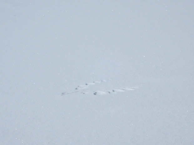 苦しいからよく立ち止まる。鳥が羽ばたいた跡を見つけた。こんなところにまでいるのか、それとも飛べないからこんな風に跡がついたのか、そんなことをぼうっと考えながら、また次の一歩を踏み出す。