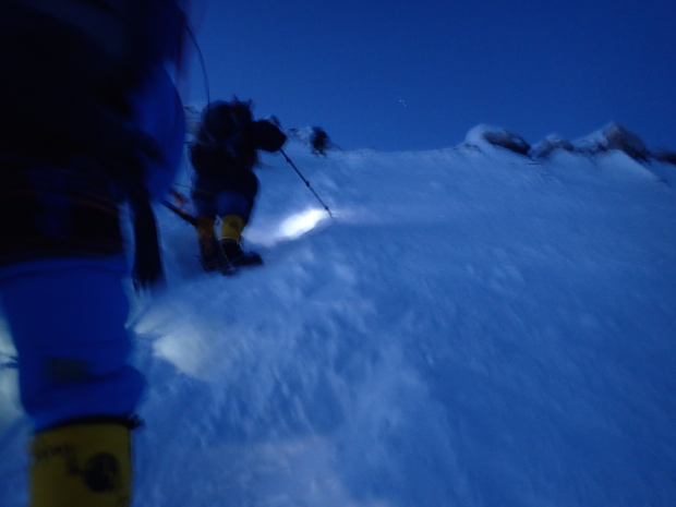 サミットへのアタックは深夜12時に出発。ヘッドランプだけを頼りに歩く。