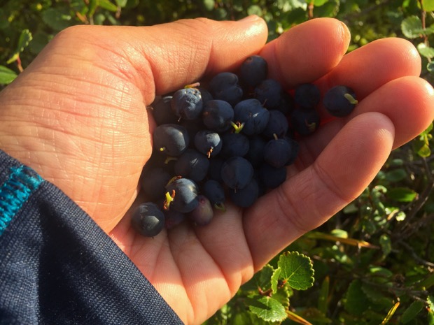 何よりすばらしいのは野生のブルーベリーがそこら中になっているから食べ放題なこと。甘みを摂り、水分も補給できてうまい!