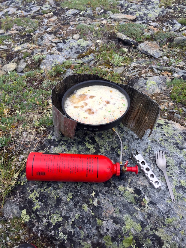 今回のアラスカは川旅がメインだったから、持参しているマットが山用と違い大きく重い。それだけでなく食糧もだ。歩いてる途中で「2泊3日で1人なんだから火を使わないメニューで構成すればよかった」と後悔しながら歩き、どんどん食べることで食料、水、ホワイトガソリンを減らした。
