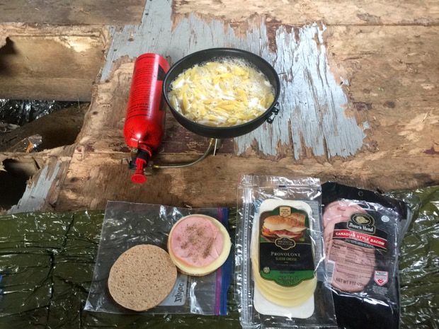 見た目はきれいだったが、中はそれなりに散らかり床に穴も開いていた。ほうきで軽く掃除し、置いてあった厚手のエマージェンシーシートを敷き、マットを広げてひと休み。15時前だから昼寝をした。外には雨水が溜められている。昨日雨が降ったし、少しはフレッシュだろうと持ってきた水を使わず、お茶や夕食のパスタは沸騰させて雨水で作った。建物のなかはクマの心配がないからリラックスできる。